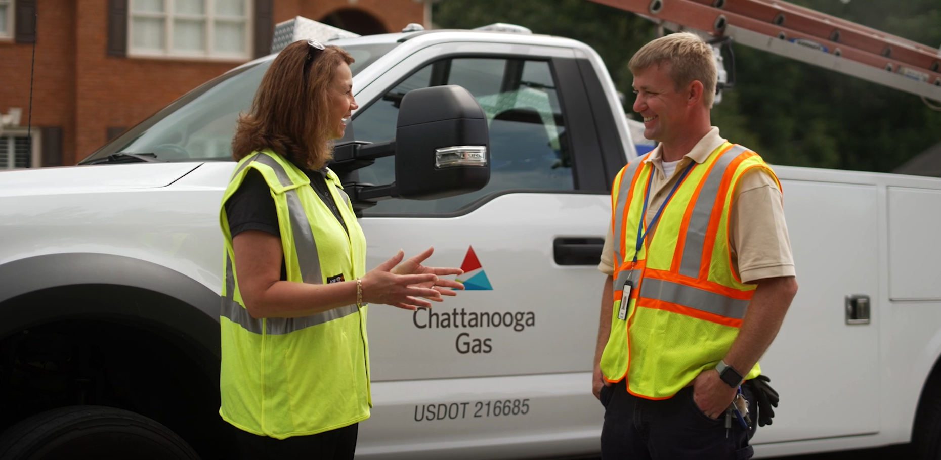 Southern Company Gas Chairman, President & CEO Kim Greene recently shadowed a large meter specialist for Chattanooga Gas during a ride-along, in which gas service was activated for a new customer. The video captures the unique and pivotal role that frontline team members like Robert Conway play in the success of Chattanooga Gas, recognized among the most trusted utilities in the United States. Chattanooga Gas is proud to provide clean, safe, reliable, and affordable energy for its customers, neighbors, and communities. Even amid the effects of a global pandemic, Chattanooga Gas remains committed to ensuring comfort and safety for customers.